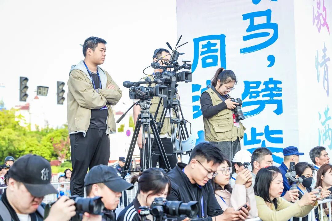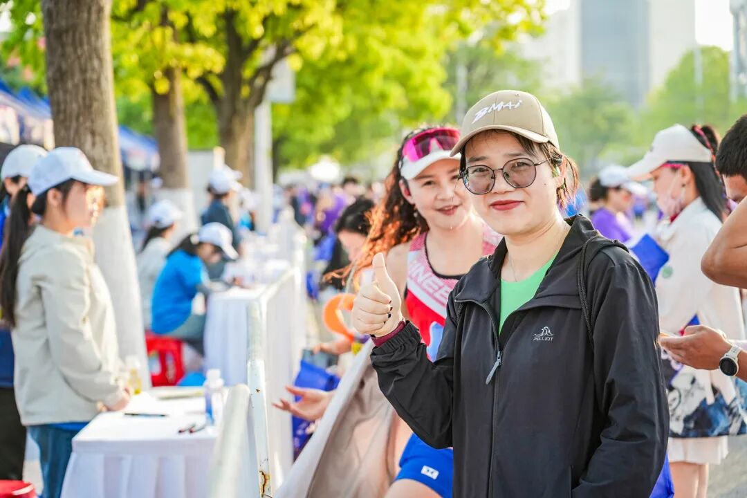 1070余名志愿者在领物、补给、指引、加油等岗位微笑服务——他们用汗水诠释“奉献”,成为赛道上最温暖的风景。赛道两侧,雾炮车、降温海绵、特色补给、赛道摄影等服务一应俱全,让跑友跑得舒心、跑得尽兴。