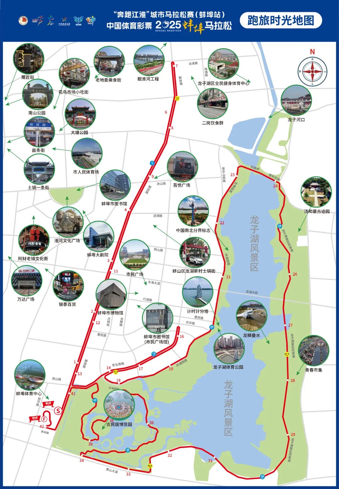 跟着赛事去旅行,2025蚌马特别推出——跑旅时光地图,融汇美食、游玩、体育三大主题,引领跑者与游客从味蕾到心灵,全方位深度感受“淮河明珠,智造之城”的独特魅力,真正实现“一场马拉松,认识一座城”。