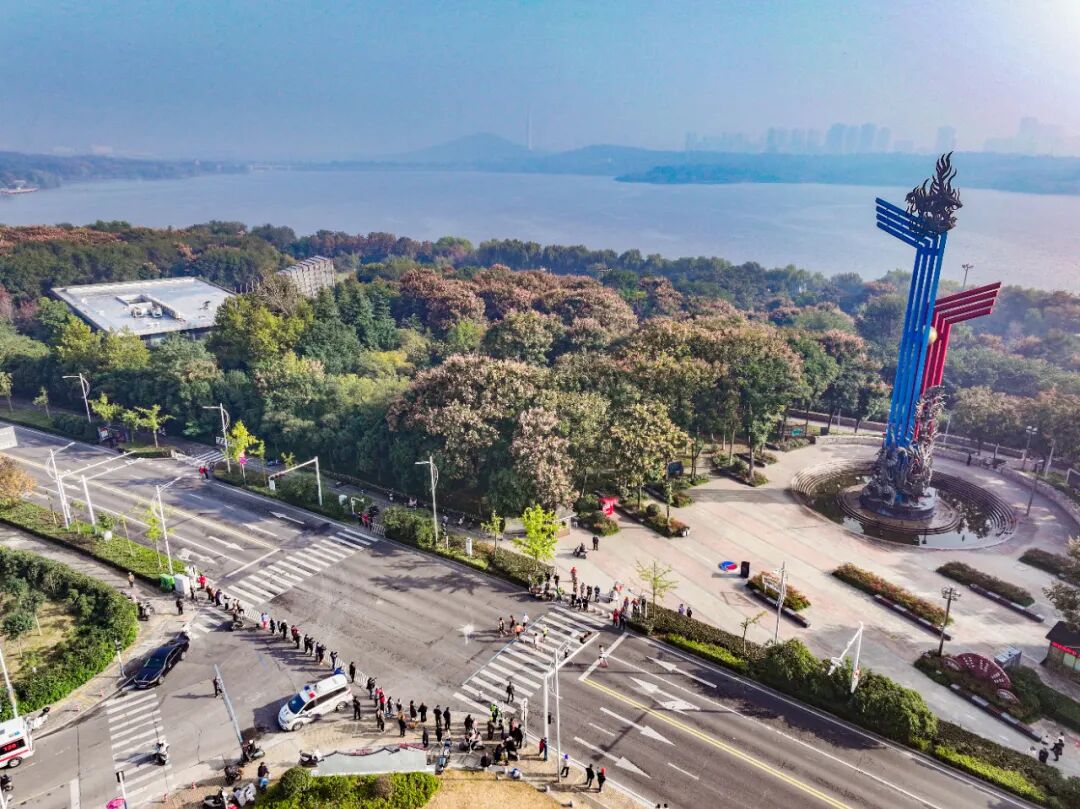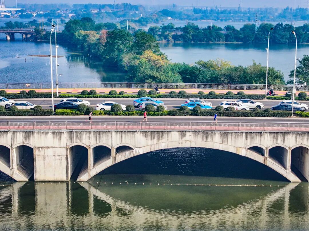 当跑者的身影掠过珍珠桥,龙子湖的浩渺烟波便在眼前豁然铺展。环湖路似两条绸带依水蜿蜒,引领众人沉浸于水天一色的静谧。