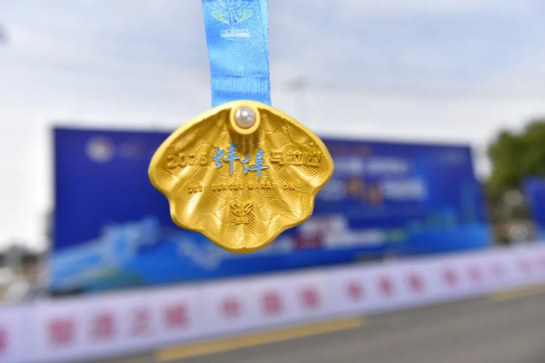 一路奔跑,跑者们在蚌埠市体育中心体育场迎来属于自己的高光时刻。奖牌,正是“珠城”为跑者献上的最好礼物:金色蚌壳顶部镶嵌浑圆珍珠,寓意每位跑者皆是“珠城”孕育出的璀璨明珠,闪耀独属于你的光芒。